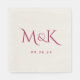 Serviette En Papier Élégant et simple Mariage Magenta Monogramme