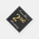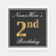 Cette conception simple et élégante de serviette en papier comporte un message comme "NameHere’s 2nd Birthday" (avec le "2nd" ayant une fausse couleur dorée) dans une zone carré de couleur noire avec un contour de bordure simple. Le nom est dans un texte de type script de couleur blanche, et peut être customisé. Des serviettes comme celles-ci pourraient être utilisées à une fête d'anniversaire pour quelqu'un qui célèbre son deuxième anniversaire. [~Z0000136]