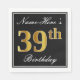Serviette En Papier Elégant, Faux Gold 39e anniversaire + Nom personna