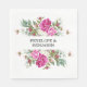 Serviette En Papier Elegant Floral Pink Peony Monogram Wedding