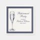 Élégance intemporelle pour les célébrations de retraite Cette serviette de retraite exhale une élégance formelle avec son centre arrière - plan bleu profond et blanc cassé, offrant un attrait classique pour tout événement. Le savoureux mélange de polices de script et de serif vient compléter la simplicité générale, tandis qu'un graphique en verre de champagne ajoute une touche de réjouissance. Idéal pour les fêtes d'entreprise ou de famille, cette serviette est facilement personnalisable pour votre événement spécial.
