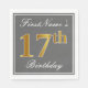 Serviette En Papier Elégant Grey, Faux Gold 17e anniversaire; Nom pers