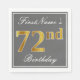 Serviette En Papier Elégant Grey, Faux Gold 72e anniversaire; Nom pers