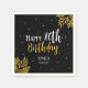 Elegant Happy 80th Birthday Gold Foliage Party Napkins. An elegant gold foliage on a black background. Add your name and age, and make your own birthday party napkins.