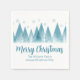 Une élégante rangée de sapins d'hiver et de flocons de neige au-dessus de votre script Joyeux Noël personnalisé et de votre nom de famille en joli bleu sous la forêt remplie de neige. Serviettes de fête de famille de vacances modernes avec votre message personnalisé.