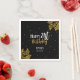 Elégante Joyeuse 21e anniversaire Gold Foliage Party Napkins. Un élégant feuillage doré sur un arrière - plan noir. Ajoutez votre nom et votre âge, et faites vos propres serviettes de fête d'anniversaire.