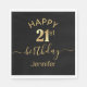 Serviette En Papier élégant joyeux anniversaire 21e or noir