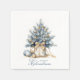 Serviette En Papier Elégant Joyeux Arbre de Noël Or bleu Aquarelle