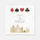 Serviettes Las Vegas Destination Wedding modernes et élégantes. Design caractéristiques Las Vegas City Skyline En or, clubs, diamants, coeurs et pique des icônes en or élégant cadre et des détails en lettrage tendance sur le devant.