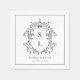 Ces élégantes serviettes en papier Mariage Monogram Crest, en noir et blanc classique, présentent une vintage crête de monogramme de style baroque et une typographie élégante intemporelle, et sont parées d'un cadre délicat.