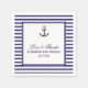 Customisez cette élégante conception de Napkin Nautical Mariage Navy Stripes. Motif à rayures bleu marine et blanc avec ancre de navire de marine au sommet et bordure en corde bleue et blanche.Le motif rayé bleu et blanc marine est également placé à l'arrière. Un modèle pour une personnalisation facile de vos détails mariages tels que les noms de mariée et de mariée ainsi que la date du mariage.Même design est disponible dans d'autres fournitures fixes mariages correspondantes pour porter le thème mariage nautique dans le style.