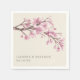Élégante serviette à mariage floral avec une branche composée de fleurs de cerisier rose aquarelle peintes et vos noms et date ci-dessous, sur un arrière - plan d'ivoire. Vos détails sont dans une couleur marron foncé dans l'alignement gauche. Ces serviettes chic sont une excellente façon d'ajouter une touche personnelle à votre réception, soirée de fiançailles ou dîner de répétition et sont parfaites pour une célébration au printemps.