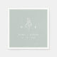 Serviettes de mariage vert sauge pâle avec un design minimaliste de feuille d'art de ligne monogramme.
