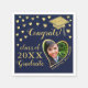 Ces serviettes personnalisées en bleu marine et or ont été conçues pour une fête de remise de diplômes de 2025. Utilisez les modèles pour télécharger la photo de l'étudiant et tapez un nom et une année. Une photo en forme de coeur, une police de script, un coeur doré et l'illustration casquette du diplômé rendent ce design unique et élégant.