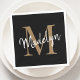 Serviette En Papier Élégant Monogramme d'or noir Script Girly Annivers
