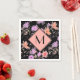 Serviette En Papier Élégant monogramme floral noir et rose corail