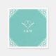Serviette En Papier Élégant Monogramme Lovebirds en Turquoise