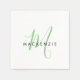 Serviette En Papier Élégant Monogramme moderne blanc vert Script
