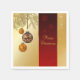 Illustration de Noël noble et élégante : branches dorées d'arbres de Noël avec pendaison de boules de Noël sur un arrière - plan rouge-doré.