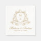 Serviette En Papier Élégant or Floral Crest Monogram Mariage