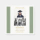 Pastel Green Elegant Gold Ornament Graduation Party 2 serviettes photo. Une élégante serviette personnalisée de célébration de graduation avec un script branché et deux ornements dorés. Ajoutez votre nom et 2 photos - vous pouvez utiliser alors et maintenant des photos du diplômé.