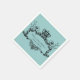 Des serviettes jetables en papier, parfaites pour la réception de mariage, la douche pour couple ou le dîner de répétition, présentent une conception royale de parchemins, de feuilles et de couronne royale avec une zone où vous pouvez ajouter les noms de la mariée et du marié et la date du mariage, le tout sur un arrière - plan bleu.