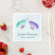 Serviette En Papier Élégant Papillons Aquarelle Vert & Violet