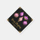 Add a touch of holiday glamour to your festive table with this purple and gold Christmas napkin. Featuring five hanging ornaments - each with a unique design including glittering stars, snowflakes and florals - this layout blends classic with modern elegance. Set against a rich black background with golden sparkles, it's perfect for upscale gatherings, winter parties, or seasonal celebrations.
