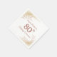 Celebrate 80th birthday with this exquisitely designed rose gold and glitter napkin. Featuring elegant botanical accents and shimmering gold dust effect. Personalize it with any name and age to create a memorable and stylish atmosphere for her special day. Perfect for adding a touch of glamour to your birthday party.