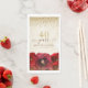 Ces élégantes serviettes d'hôtes en papier du 40e anniversaire de fête fleurie présentent des roses rouges peintes à l'aquarelle avec des noms et date pour personnaliser dans la calligraphie script moderne sur un arrière - plan doré brillant avec parties scintillant en faux or. Conçu par Susan Coffey.