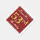 Cette conception simple et élégante de serviette en papier comporte un message comme "NameHere’s 53rd Birthday" (avec le "53rd" ayant une fausse couleur dorée) dans une zone carré de couleur rouge avec un contour de bordure simple. Le nom est dans un texte de type script de couleur blanche, et peut être customisé. Des serviettes comme celles-ci pourraient être utilisées à une fête d'anniversaire pour quelqu'un qui célèbre son cinquante-troisième anniversaire. [~Z0000138]