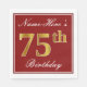 Cette conception simple et élégante de serviette en papier comporte un message comme "75e anniversaire de Name-Here’s" (avec le "75e" ayant une fausse couleur dorée) dans une zone carré de couleur rouge avec un contour de bordure simple. Le nom est dans un texte de type script de couleur blanche, et peut être personnalisé. Des serviettes comme celles-ci pourraient peut-être être utilisées à une fête d'anniversaire pour quelqu'un qui célèbre son soixante-quinzième anniversaire. [~Z0000138]