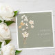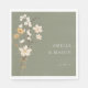 Elegant Sage Green Wildflower Bouquet Wedding Napkins. This napkin has a soft, elegant style with a muted green background that feels calming and timeless. The classic serif font with the organic wildflowers give the design a formal but whimsical quality. Delicate floral illustrations along the left side add a touch of nature-inspired charm. The layout is clean and organized, using a right alignment and clear spacing to create a refined look. Overall, the design feels romantic yet understated, perfect for a modern or a rustic wedding.