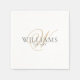 Serviette En Papier Élégant Script blanc gris or Monogramme