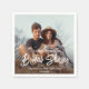 Ajoutez une touche d'élégance aux décorations de la fête de mariage avec des serviettes en papier photo personnalisées chic et modernes. L'image et tout le texte sur ce modèle sont faciles à personnaliser pour la fête de mariage, la soirée de fiançailles ou tout autre événement d'un couple. (ASTUCE DE PLACEMENT D'IMAGE : Un moyen simple de positionner une photo exactement comme vous le souhaitez est de la recadrer avant de la télécharger sur le site Web de Zazzle.) Le design noir et blanc minimaliste et élégant présente une calligraphie de script brossé audacieuse, une typographie art déco vintage classique et une photo du couple fiancé. Félicitations à la mariée !