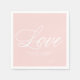 Serviette en papier personnalisable avec un script élégant rose et blanc. Cette serviette "love" est parfaite pour les mariages.