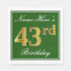 Serviette En Papier Elégant Vert, Faux Or 43ème Anniversaire + Nom