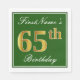 Cette conception simple et élégante de serviette en papier comporte un message comme "65e anniversaire de FirstName" (le "65e" ayant une fausse couleur dorée) dans une zone carré de couleur verte avec un contour de bordure simple. Le nom est dans un texte de type script de couleur blanche, et peut être personnalisé. Des serviettes comme celles-ci pourraient être utilisées à une fête d'anniversaire pour quelqu'un qui célèbre son soixante-cinquième anniversaire. [~Z0000137]