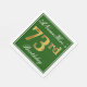 Cette conception simple et élégante de serviette en papier comporte un message comme "ANameHere’s 73rd Birthday" (avec le "73rd" ayant une fausse couleur dorée) dans une zone carré de couleur verte avec une bordure simple. Le nom est dans un texte de type script de couleur blanche, et peut être personnalisé. Des serviettes comme celles-ci pourraient peut-être être utilisées à une fête d'anniversaire pour quelqu'un qui célèbre son soixante-treize anniversaire. [~Z0000137]