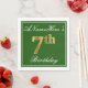 Cette conception simple et élégante de serviette en papier comporte un message comme "AnameHere’s 7th Birthday" (avec le "7th" ayant une fausse couleur dorée) dans une zone carré de couleur verte avec un contour de bordure simple. Le nom est dans un texte de type script de couleur blanche, et peut être personnalisé. Des serviettes comme celles-ci pourraient être utilisées à une fête d'anniversaire pour quelqu'un qui célèbre son septième anniversaire. [~Z0000137]
