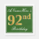 Serviette En Papier Elégant Vert, Faux Or 92ème Anniversaire + Nom