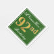 Cette conception simple et élégante de serviette en papier comporte un message comme "AnameHere’s 92nd Birthday" (avec le "92nd" ayant une fausse couleur dorée) dans une zone carré de couleur verte avec un contour de bordure simple. Le nom est dans un texte de type script de couleur blanche, et peut être customisé. Des serviettes comme celles-ci pourraient peut-être être utilisées à une fête d'anniversaire pour quelqu'un qui célèbre son quatre-vingt-dix-deuxième anniversaire. [~Z0000137]