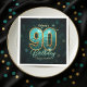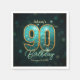 Celebrate in style with our customizable paper napkins, designed to make every detail of a 90th birthday sparkle. The focal point is a magnificent "90" in a breathtaking teal, beautifully outlined in luxurious gold. Subtle specks of gold dust seem to dance around the numbers, catching the light like tiny constellations, adding an irresistible touch of glamour and joy. Easily customize with a name and date, making these the perfect personalized pop for any grand 90th celebration.