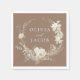 Ajoutez une touche personnalisée à votre réception de mariage, à votre dîner de répétition, à votre fête de fiançailles ou à votre anniversaire avec ces élégantes serviettes Vintages en mariage de couronne florale. Avec ses noms encerclés d'une délicate couronne de fleurs d'aquarelle et de feuillage dans des tons chauds et neutres de blanc, beige, ivoire, or et marron, ces serviettes personnalisées sont l'accent parfait pour des fêtes d'inspiration rustique, vintage ou boho.