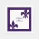 Personnalisez ces serviettes en papier avec deux symboles Fleur de Lis dans un design audacieux, élégant, violet et blanc. Parfait pour votre événement mariage de la Nouvelle-Orléans !