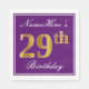 Serviette En Papier Élégant violet, Faux Gold 29ème anniversaire + Nom