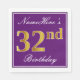 Cette conception simple et élégante de serviette en papier comporte un message comme "NameHere’s 32nd Birthday" (avec le "32nd" ayant un faux look doré) dans une zone carré de couleur violette avec un contour de bordure simple. Le nom est dans un texte de type script de couleur blanche, et peut être customisé. Des serviettes comme celles-ci pourraient être utilisées à une fête d'anniversaire pour quelqu'un qui célèbre son trente-deuxième anniversaire. [~Z0000140]