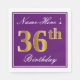 Serviette En Papier Elégant violet, Faux Gold 36ème anniversaire + Nom
