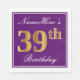 Serviette En Papier Elégant violet, Faux Gold 39ème anniversaire + Nom