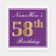 Serviette En Papier Elégant violet, Faux Gold 58ème anniversaire + Nom